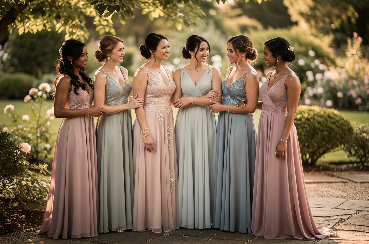 Palette couture : comment composer un cortège de demoiselles d’honneur chic et harmonieux